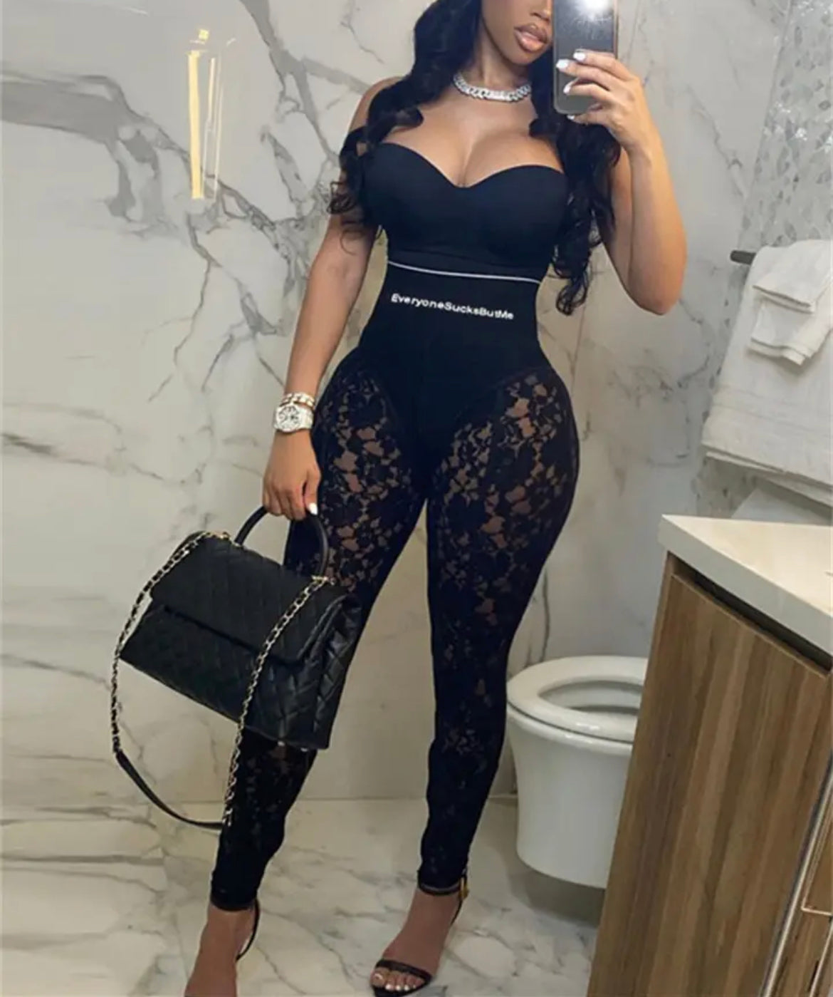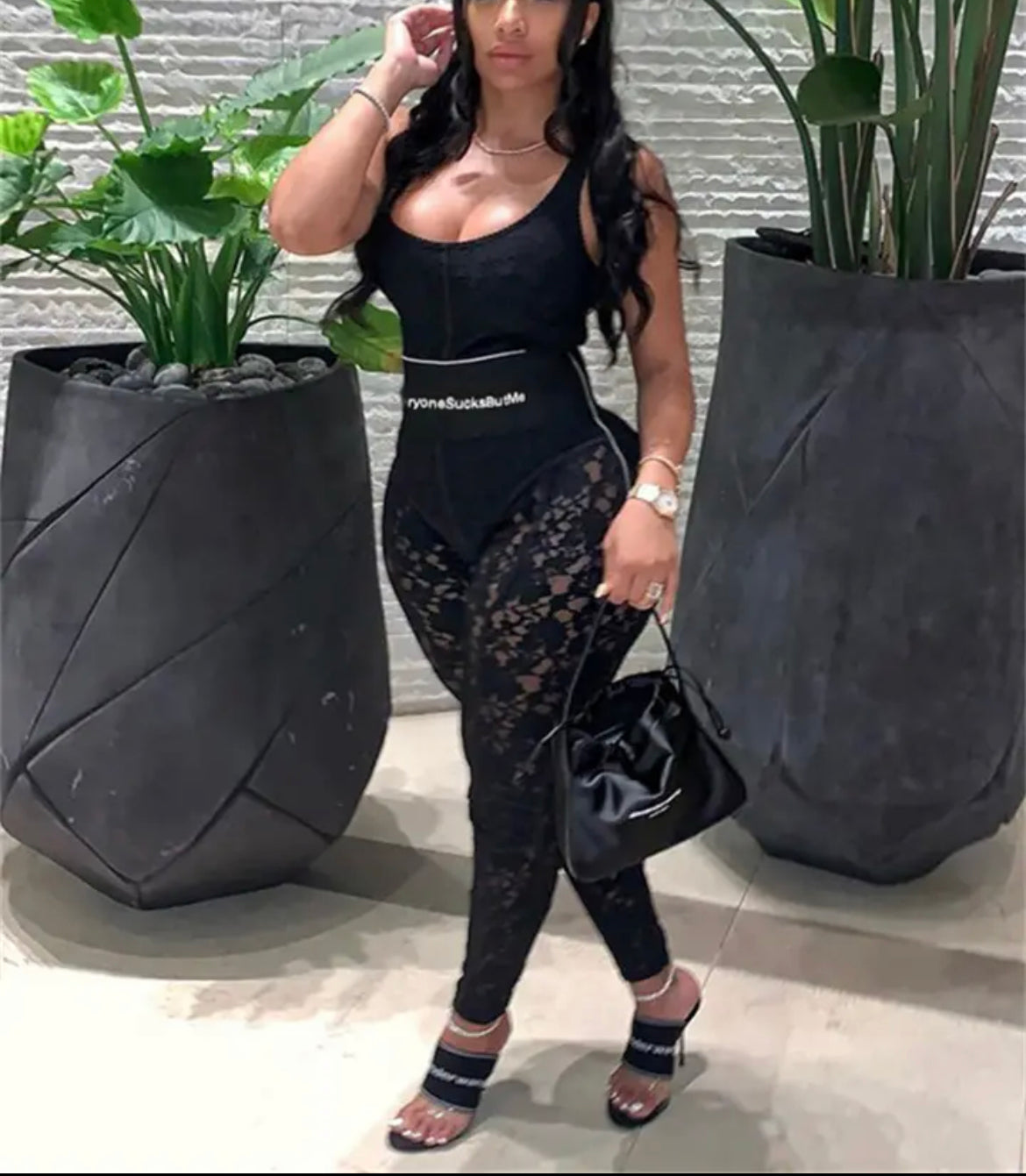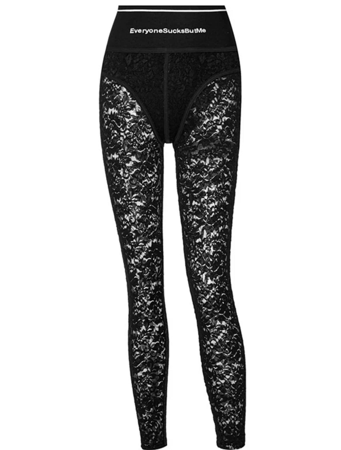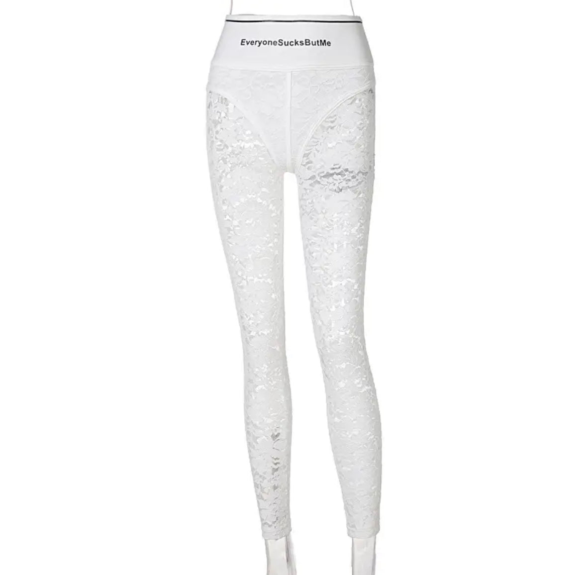 Demikollection.co Lace Leggings with Saying | Stretchy Any Occasion Sexy Lace Club night Date night Trendy Leggings